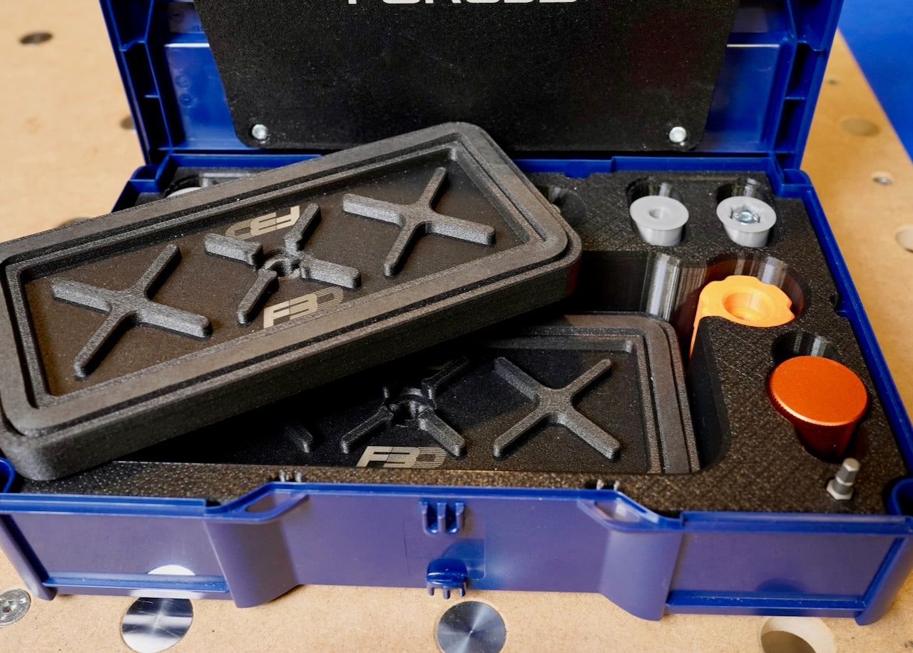 To handle varied setups, this kit also includes pod balancing spacers for stabilizing pods under uneven stock and CNC-cut EPDM foam gasket with matching balancing elements for cushioned workholding when using gaskets. Packed in a FORG3D Edition Systainer³ S 76 with precision fitout, the Maximus Config keeps your system complete, protected, and ready to deploy.