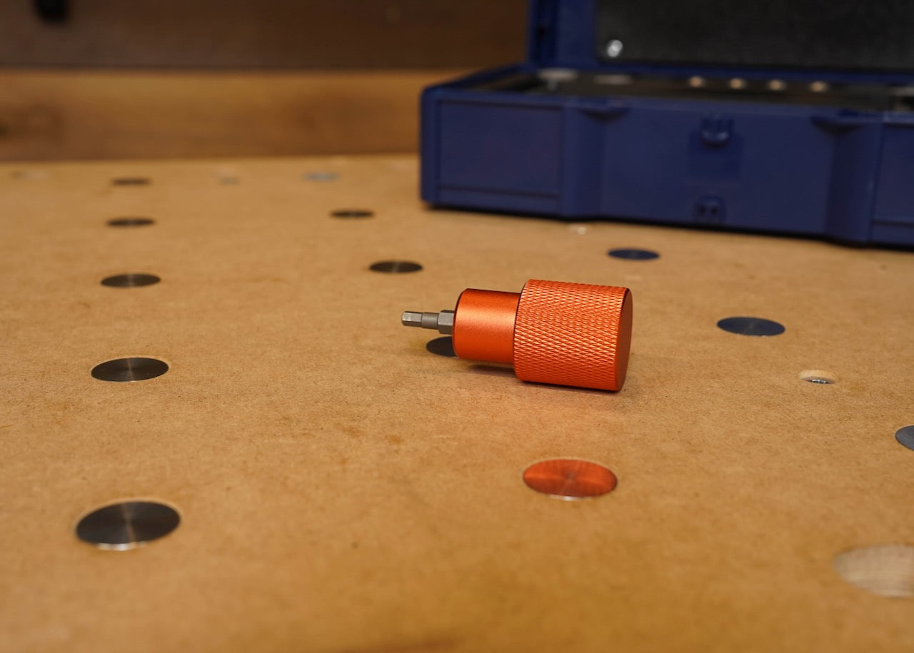 CNC-machined from aluminum with a knurled top for grip and a magnetic base, Argos makes quick work of tightening and loosening M6 fasteners across your SYS-GRP system.